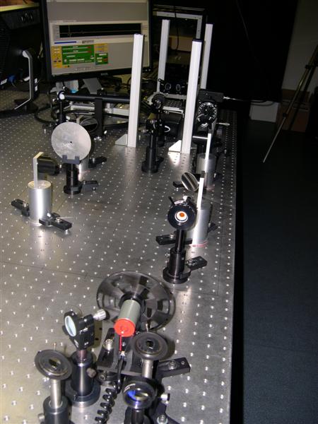 Among these setups, one is a spectroscopic bench used to characterize materials