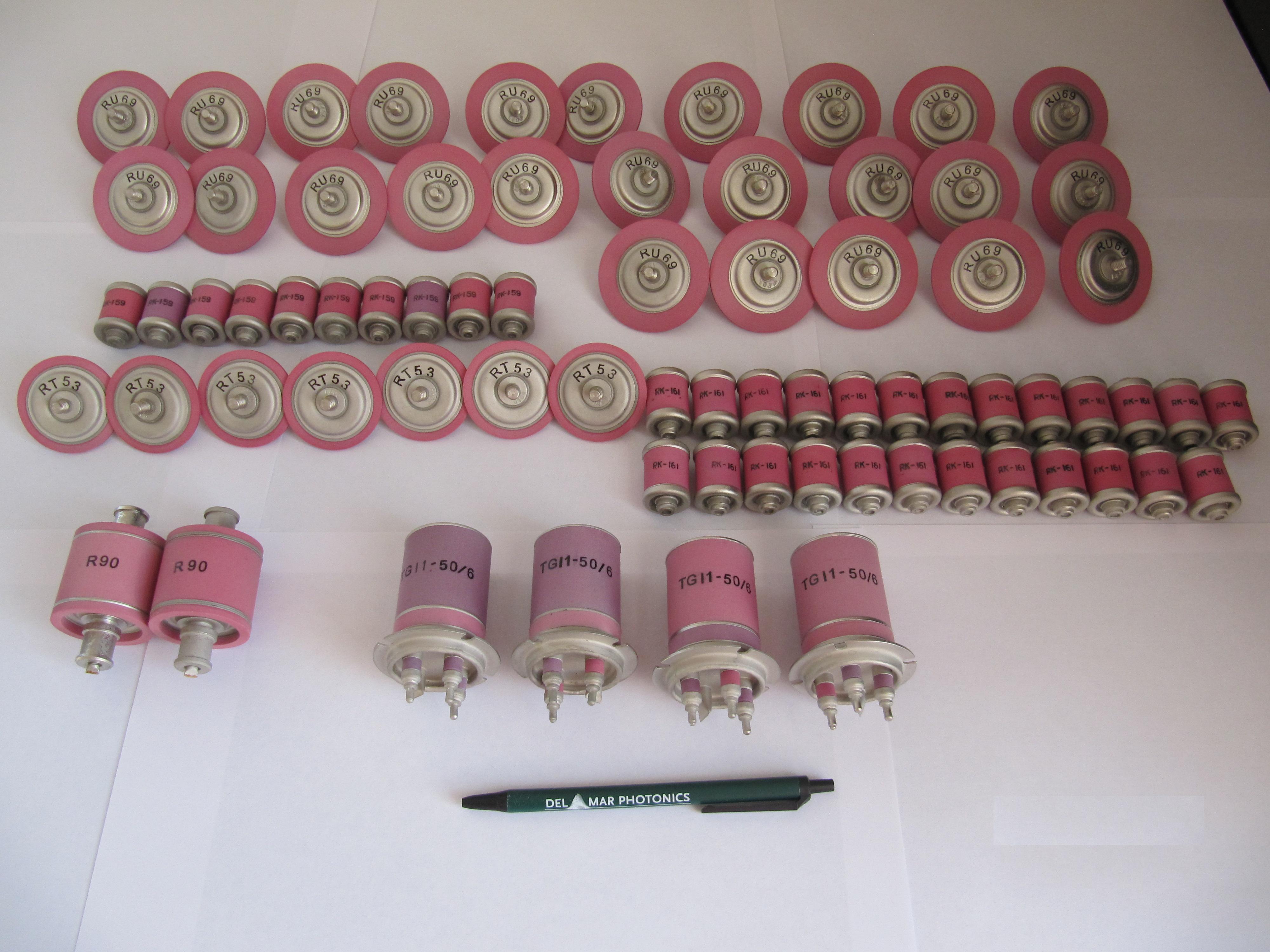 DMPTGI 1-50/6 thyratron request a quote Anode voltage: 1-6 kV Reverse anode voltage: 0.5-1.5 kV Anode current in pulse: 50 A Anode current average: 0.12 A Current anode impulse time:0.2-4.0 microseconds Steepness of anode current pulse edge: 0.25 x 109 A/s Pulse repetition rate: 1100 pulse/s Warm-up time: 3 minutes Heater current: 7 A Diameter: 50 mm Height: 76 mm NOTE: Thyratron operate at pulse repetition rate to 50000 pulse/s on condition of decrease pulse and average power. |