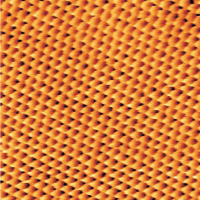 ![]() Figure 7. Atomic resolution on HOPG obtained with the 100 micron scanner. AFM contact mode, 32 angstrom scan. |